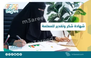 نموذج شهادة شكر وتقدير للمعلمة